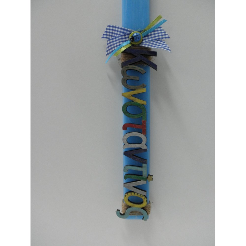 Μια όμορφη και πολύχρωμη πασχαλινή λαμπάδα με ξύλινο το όνομα, που κάθε νονός θα έκανε δώρο στον αναδεχτό του.
